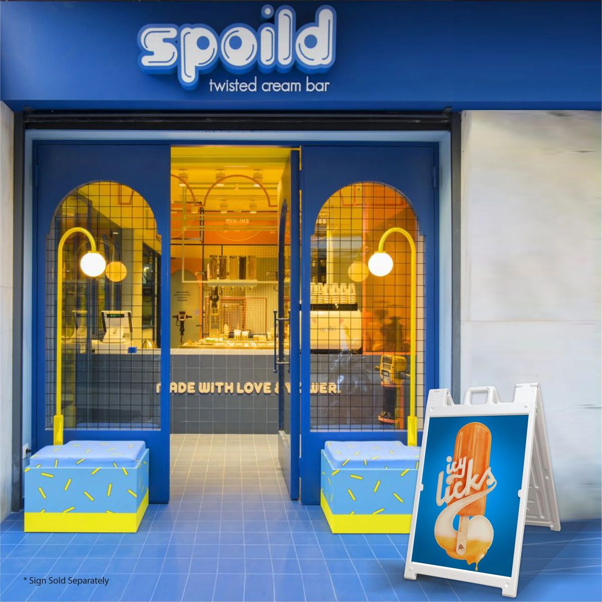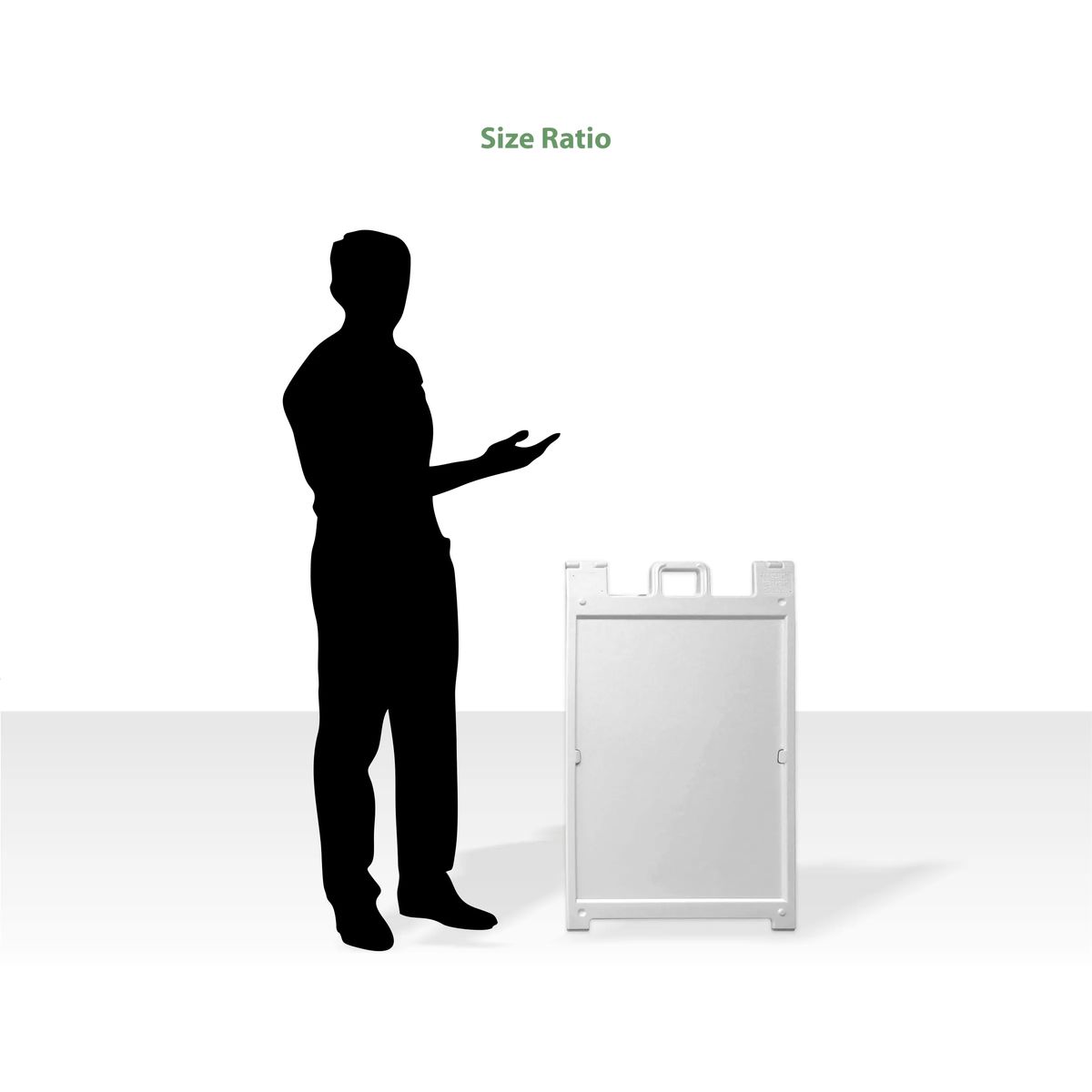 Additional InformationDurable 24" x 36" plastic A-frame with handle, stay tabs, hinge locks, and sand-fill holes.