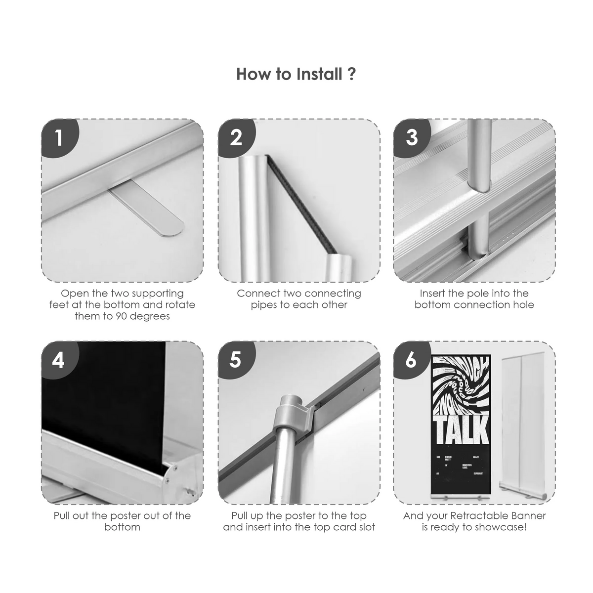 Additional InformationThe kit includes a 31.5"x78" custom digitally printed banner with the aluminum retractable stand.